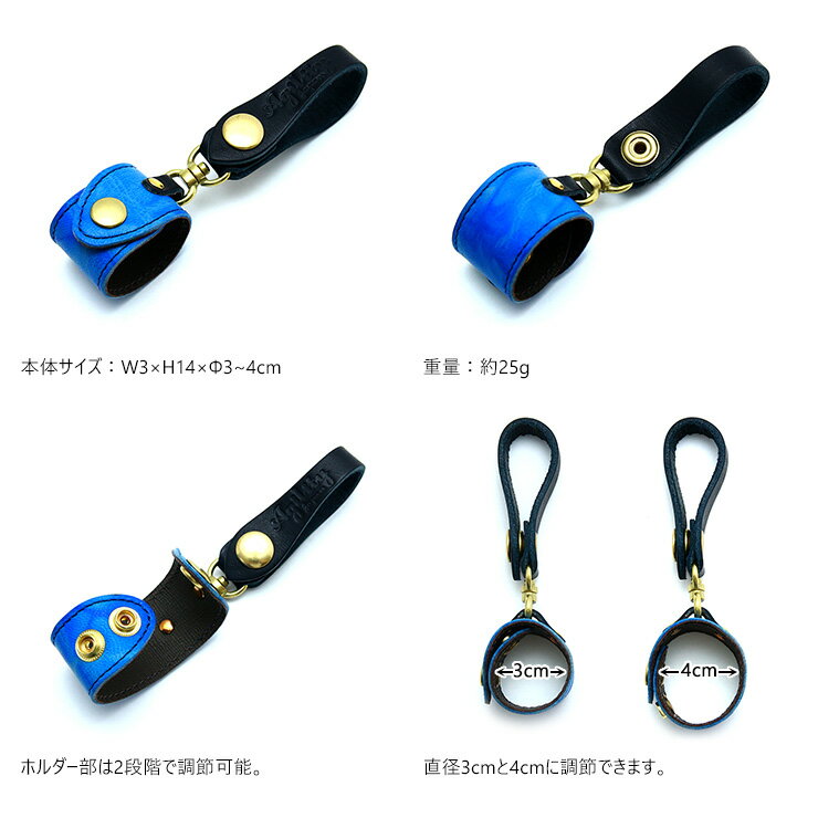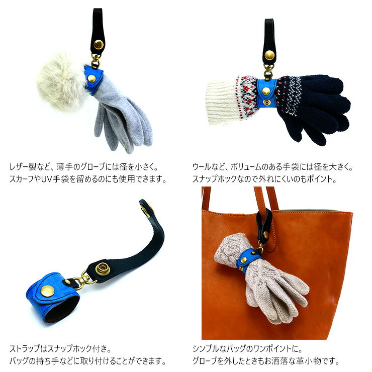 Detail 商品説明 ■素材:羊革 ■サイズ:W3× H14× D4(cm) ■重量:約24g [サイズ]W3×H14×φ3~4(cm)[素材]羊革 牛革 豚革[重量]約24g「男女兼用でつかえるグローブホルダーが欲しい」というリクエストにお応えして、ストラップ部分を太くし、グローブの厚みに合わせて2段階で調整可能なグローブホルダーです。